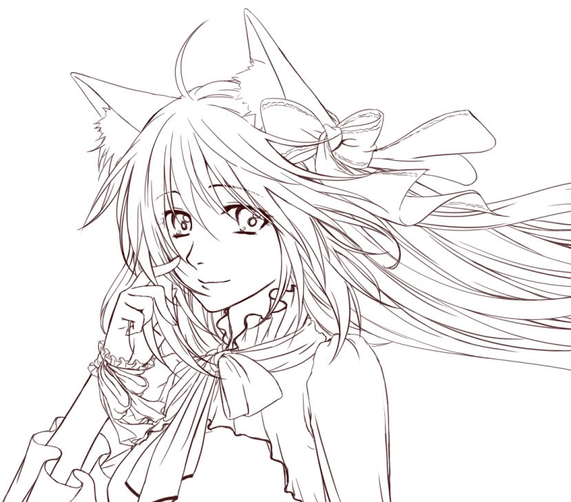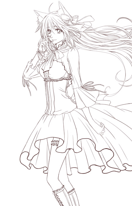 >後腦杓後方的頭髮滿飄的,比較接近無重力或風很大, >所以跟裙擺有點不協調了XD 這問題其實我也有留意的…XD 但是頭髮這種畫起來很順手 而且上色也比較方便 所以先放下這BUG…XD 到時應該會再改一改頭髮吧 飄的角度應該沒90度…