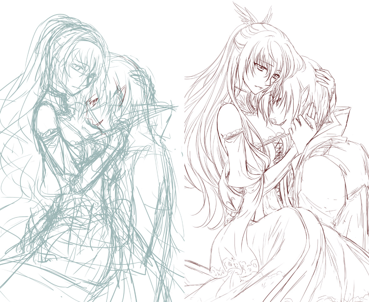聖女和吸血鬼 edit [世界]Original 2012年01月12日 拿來練習上色的圖, 所以線稿畫得比較隨便一點 圖多的關係請按下面連結 草稿和線稿 上色開始 被說頭大了所以縮了縮 眼睛試色 [0回]PR