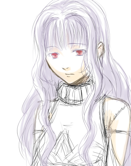 銀(?)紫髮粉紅眼睛, 很久沒試在線上轉色看看…